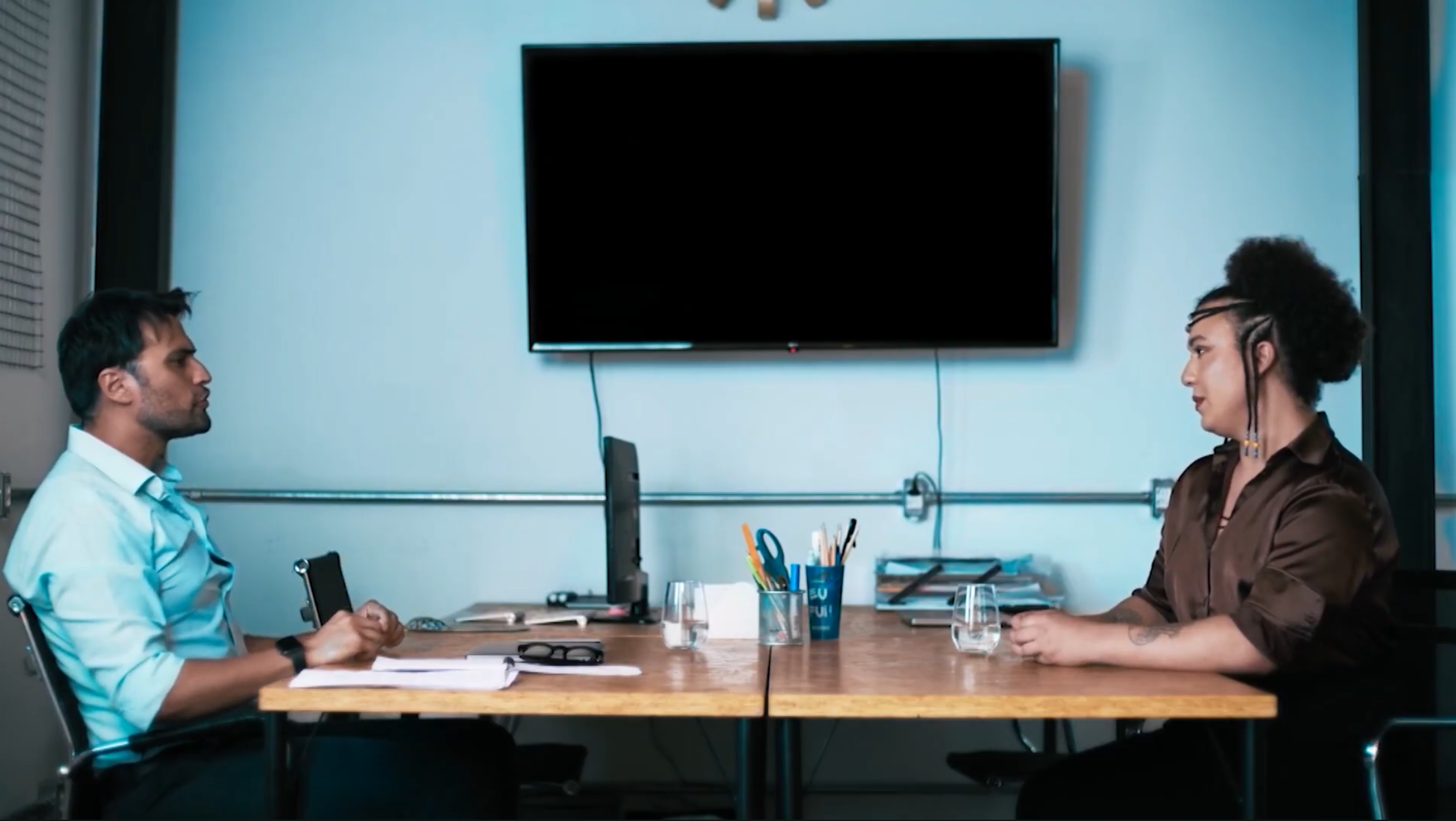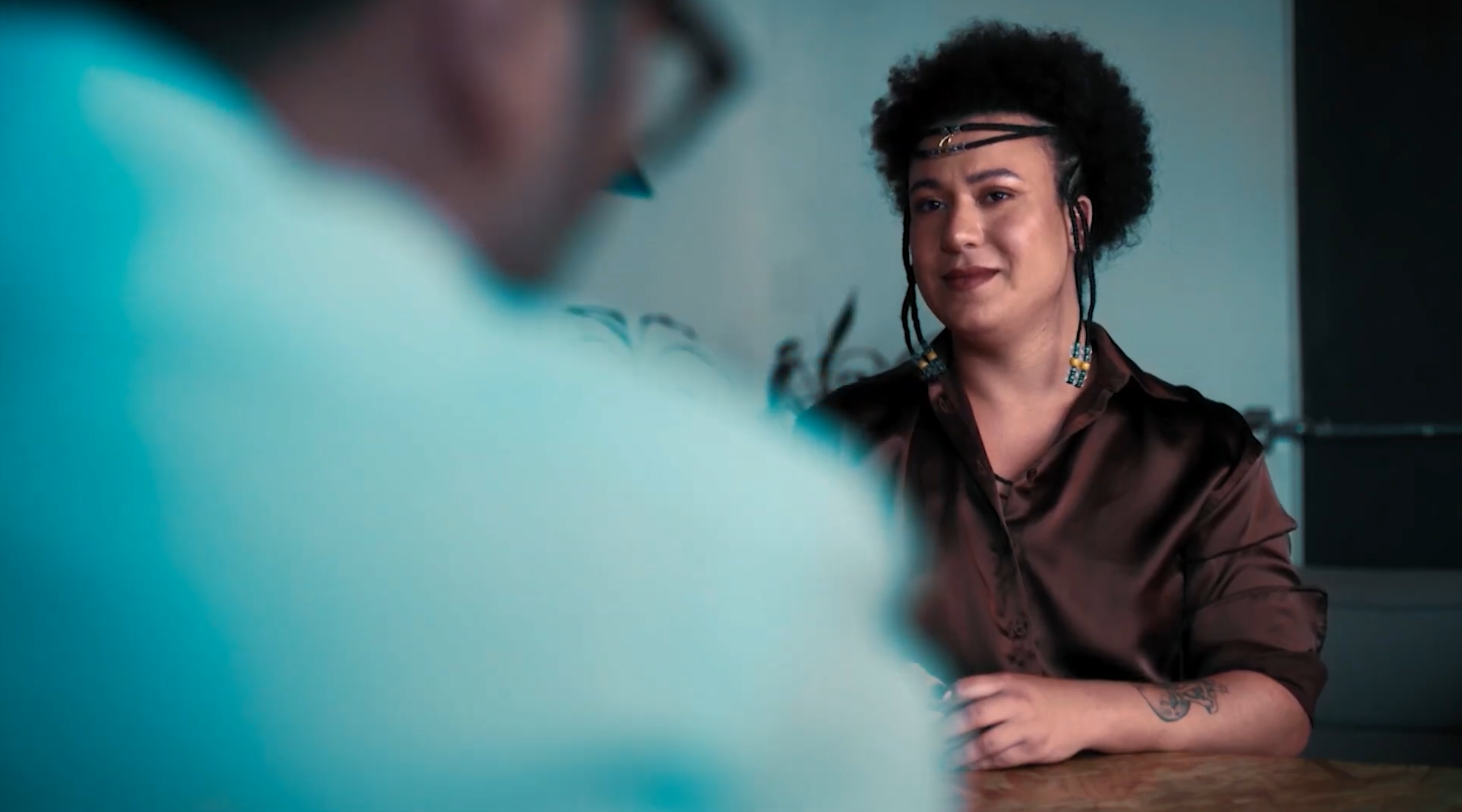 Larissa, mulher negra trans, confronta a discriminação no mercado de trabalho, desafiando o recrutador Rubens, enquanto encontra apoio em sua tia Salete, na família e na fé.
